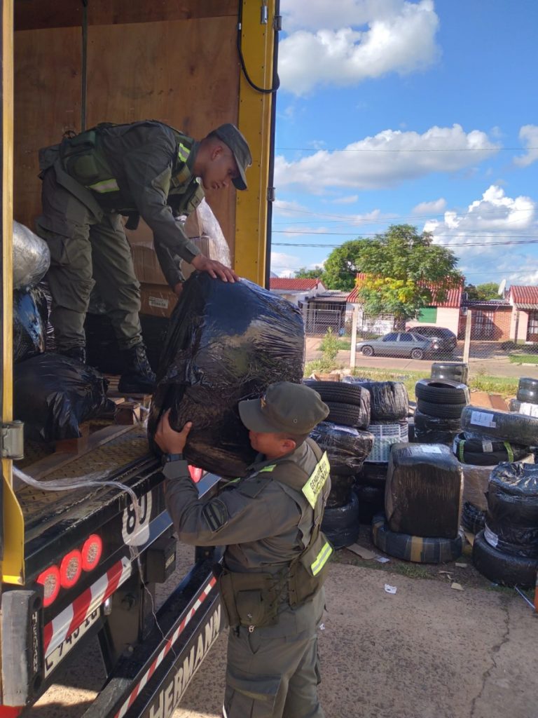Dentro de la paquetería los funcionarios hallaron un total de 323 neumáticos de distintos rodados y medidas de origen extranjero, los cuales no contaban con el aval aduanero que justificara su legal ingreso al país.