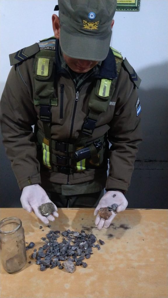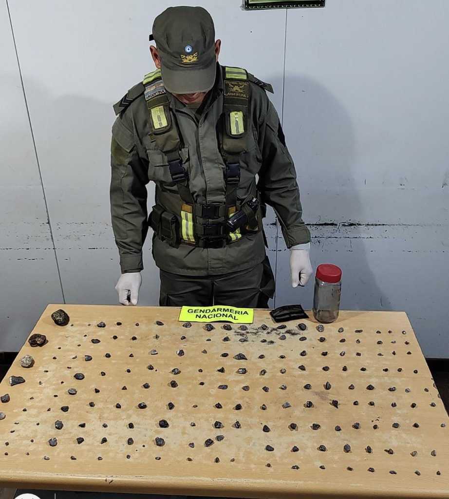 En horas de la noche del sábado, los uniformados detuvieron la marcha de un vehículo conducido por ciudadano masculino mayor de edad, procedente de la localidad de Piedrabuena (Santa Cruz), con destino a la ciudad de Resistencia (Chaco). Al momento de solicitarle la documentación del vehículo y mediante preguntas de rigor, demostró cierto nerviosismo, levantando sospechas. Esta situación motivó que se profundice el registro del rodado, pudiendo detectar gran cantidad de piedras desperdigadas del lado del acompañante, así como dentro de un frasco sobre el asiento trasero.