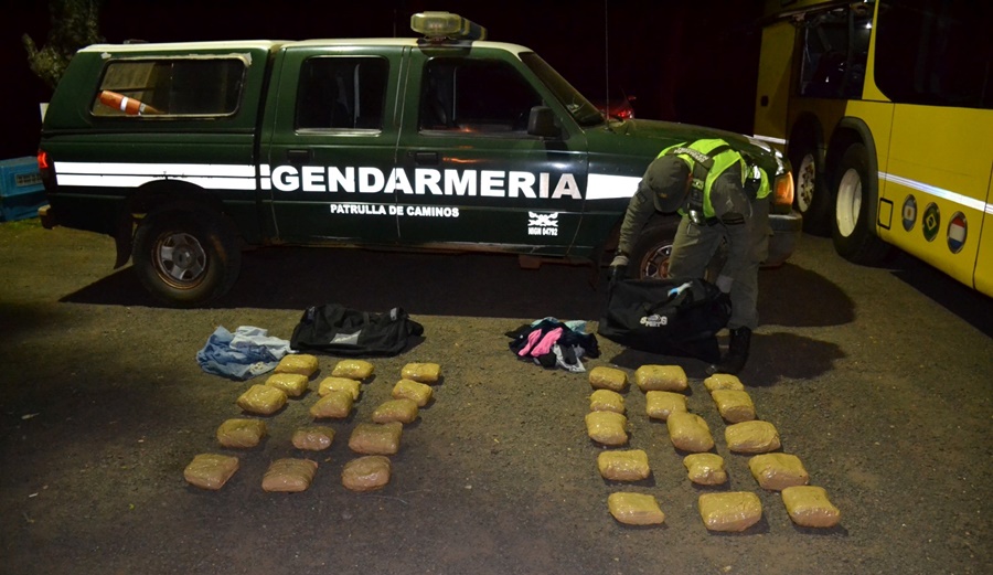 Lo propio realizó el Escuadrón 57 “Santo Tome” cuando los uniformados realizaban un Operativo público de prevención vial, en el Puesto Control Fijo “Cuay Grande” sobre la Ruta Nacional N° 14, a la altura del km 669, detuvieron la marcha de un transporte público de pasajeros, proveniente de la provincia de Misiones, procediendo a realizar una inspección en la bodega donde se encuentra el equipaje de los pasajeros. Con apoyo del can detector de estupefacientes se inspección el interior de la bodega, en donde el mismo reaccionó de manera exaltada, como lo hace habitualmente ante la presencia de estupefacientes, sobre dos bolsos.