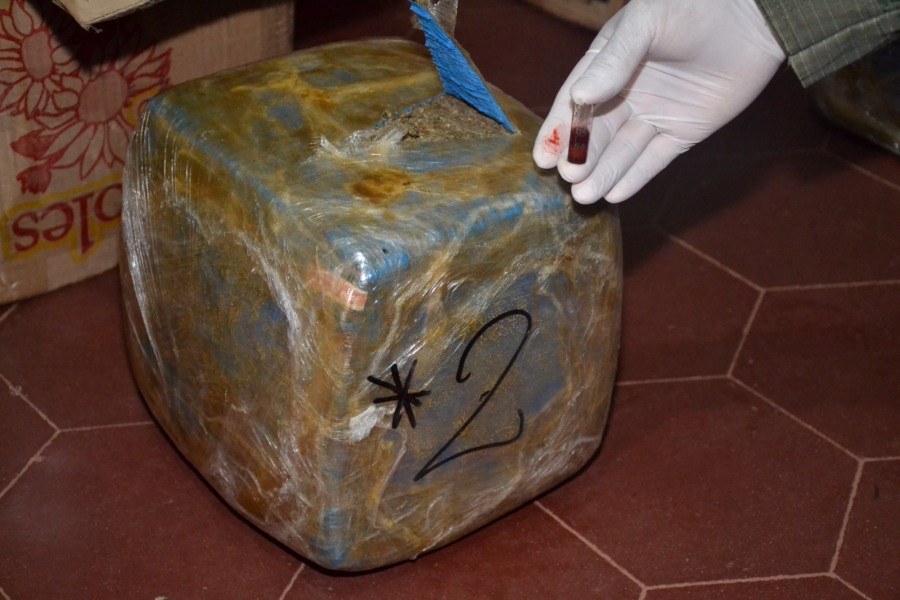 Conforme lo dispuesto por el Magistrado interviniente, y luego de examinar el contenido de los mismos, se constató la presencia de una sustancia vegetal compacta, cuyos análisis arrojaron resultados cromáticamente positivos para “cannabis sativa”, con un peso de 18,518 kilos.