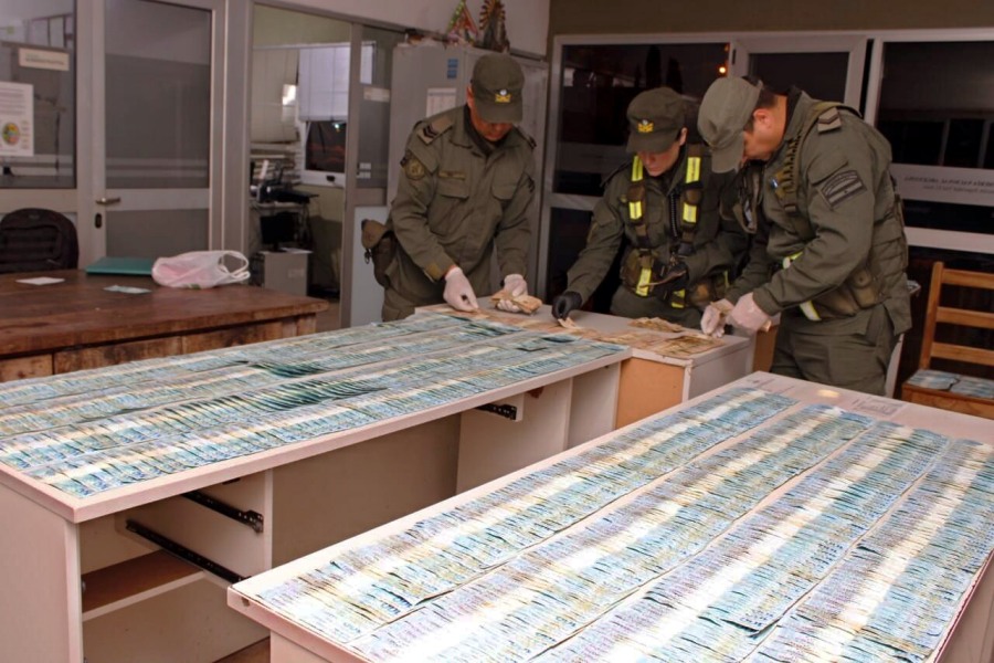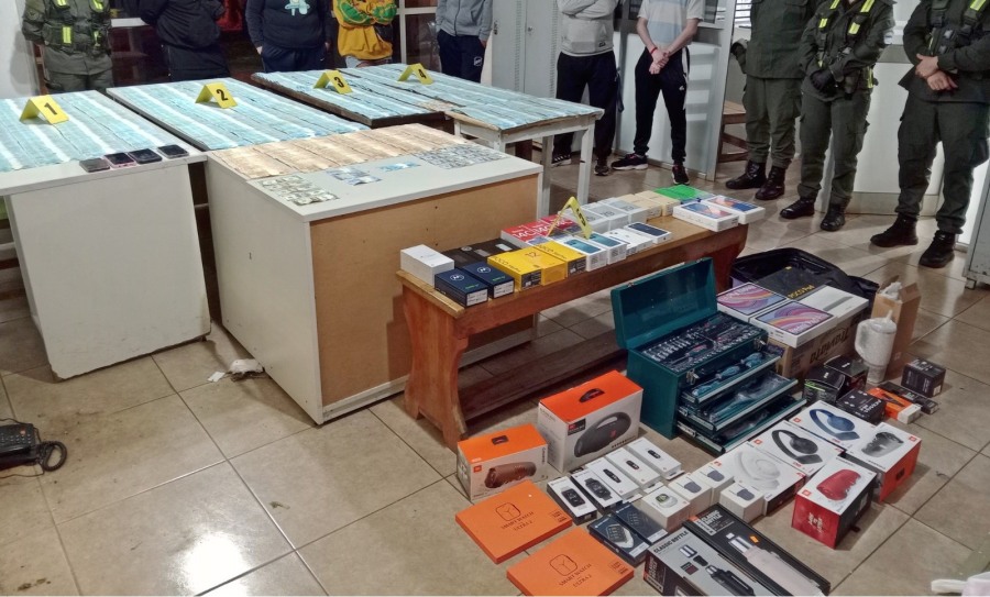 Conforme se avanzó la inspección, sobre el compartimiento de carga se observaron numerosas cajas que contenían celulares y Tablet que carecían de pie de industria y aval aduanero. Asimismo, dentro de los bolsos, carteras y prendas de vestir, los individuos ocultaban fajos de billetes, consistentes en 172.306 reales y 869 dólares estadounidenses.