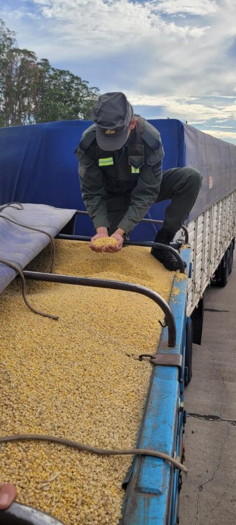 - Por otra parte, personal de la Sección “Núcleo”, dependiente del Escuadrón 7 Paso de los Libres Cabo Misael Pereyra”, logró la incautación de siete vehículos de transporte de cargas de oleaginosas (soja) provenientes de la provincia de Córdoba, los cuales pretendían ser trasladados a diferentes localidades de la provincia de Misiones.