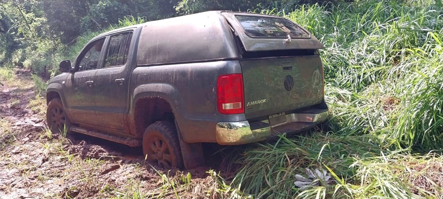 Asimismo, y en base a las huellas que se advertían sobre el mismo camino, se pudo determinar que un vehículo de gran porte habría transitado por allí en forma reciente. En base a esta información los funcionarios se desplazaron en dirección hacia la costa del río cerca de un kilómetro, lugar en donde hallaron un camión de cargas encajado en el barro. El mismo se encontraba sin ocupantes y con la llave de ignición colocada.