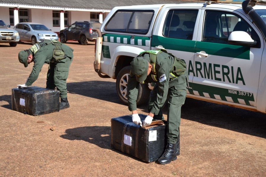 En un segundo procedimiento, integrantes del Escuadrón 13 “Iguazú” destacaron patrullas motorizadas destinadas al recorrido del ejido urbano de la ciudad de Puerto Iguazú. Durante sus actividades, los efectivos observaron siete bultos a la vera de un camino secundario en cercanías al Límite Internacional Fronterizo perteneciente al Barrio Altos del Paraná.