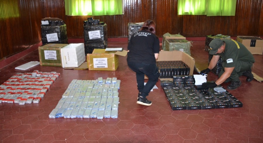 Informado de los hechos, y con la autorización correspondiente por parte del Juzgado Federal y la Fiscalía Federal de la ciudad de Paso de los Libres, se procedió con la requisa de 35 bultos, dentro de los cuales se encontraron 8.810 paquetes de cigarrillos, 140 módulos para teléfonos celulares, 790 dispositivos convertidores para TV y 414 perfumes.