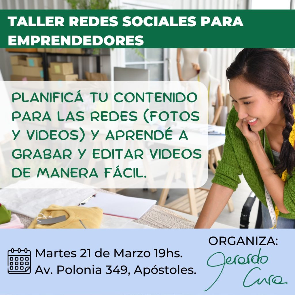 La primera actividad que vamos a realizar para emprendedores es Taller de Generación de Contenido para Redes Sociales donde haremos foco en los siguientes temas: