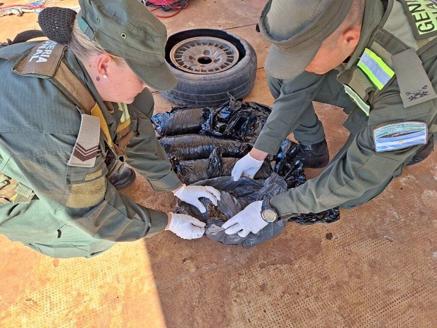 Los uniformados procedieron con el control físico y documentológico del rodado contando con el apoyo del can detector de narcóticos “Uno”, quien demostró una actitud inquieta en su paso sobre la parte trasera del mismo. Habiendo solicitado al conductor que abriera el baúl, el can señaló la rueda de auxilio, comportándose de manera exaltada como lo hace habitualmente ante la presencia de narcóticos.