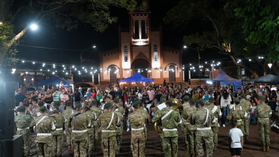 La velada musical con la Banda del Regimiento 30 fue el broche de oro para un evento que reunió a cientos de personas en la Plaza General San Martín.