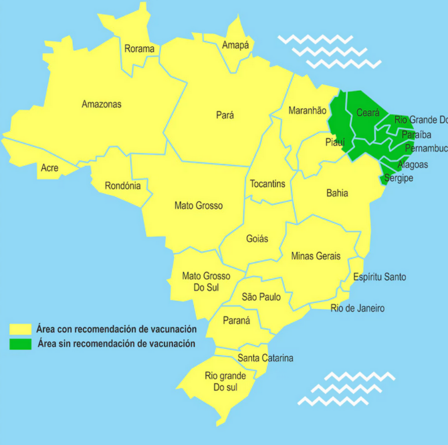 Antes de 2015, se consideraba que amplias áreas del litoral brasileño, incluyendo destinos populares como Florianópolis y Río de Janeiro, estaban libres de riesgo. Sin embargo, la expansión territorial del virus y el aumento de casos graves modificaron este panorama, extendiendo la recomendación de vacunación a casi todo el país, con excepción de pequeñas regiones del noreste.
