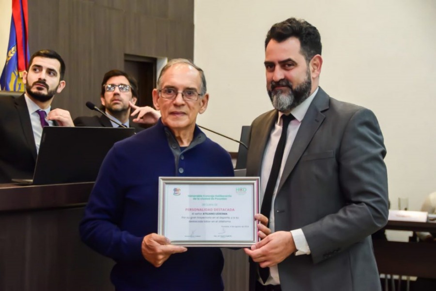 También, entregaron un beneplácito por la Fiesta Provincial de la Kolomeika, que se realizó el pasado 17 de agosto en nuestra ciudad. Seguidamente, declararon Personalidad Destacada, al señor Atilano Ledesma, por su gran trayectoria en el deporte, y a su destacada labor en la disciplina de atletismo.