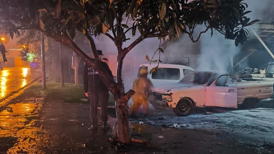 En el lugar, un automóvil Ford Falcon Ranchero se encontraba en llamas y fue rápidamente sofocado por los bomberos voluntarios.