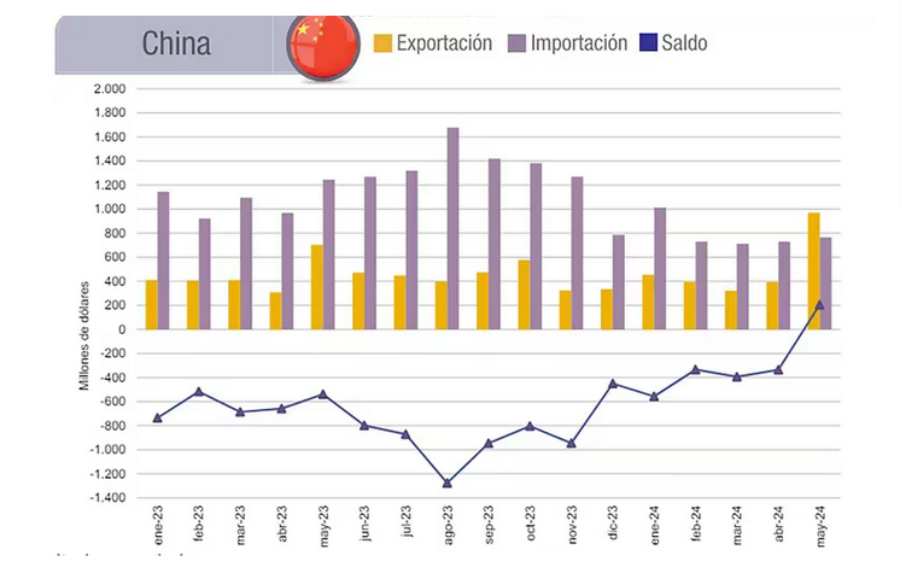 En el quinto mes del año el país exportó exportó 971 millones de dólares a ese país y sólo registró importaciones por un valor de 767 millones de dólares.