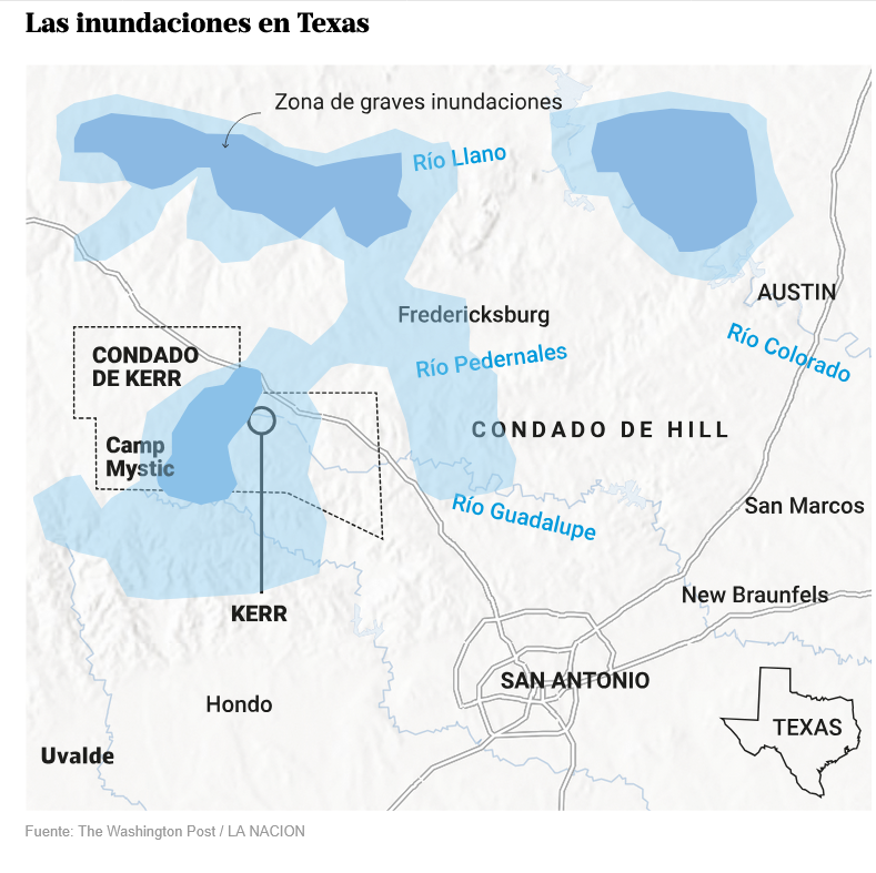 En el Camp Mystic había unas 750 niñas cuando las crecidas repentinas del río Guadalupe, alcanzaron los ocho metros en solo 45 minutos en algunas zonas, arrasaron todo a su paso el viernes. “Haremos todo lo humanamente posible para encontrarlas, revisando cada árbol, removiendo cada piedra, lo que sea necesario”, dijo el vicegobernador de Texas, Dan Patrick, a los familiares de las desaparecidas.
