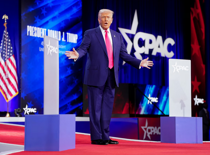 Donald Trump antes de iniciar su discurso en la CPAC, que delibera en Maryland, (Estados Unidos)