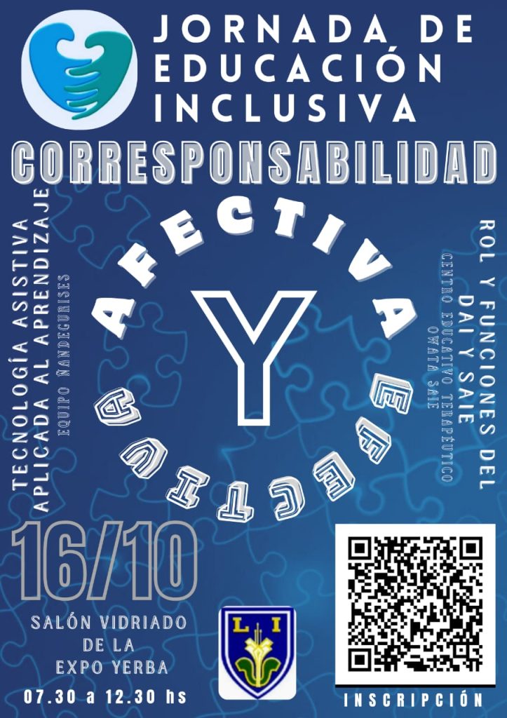- “Jornada de Educación Inclusiva: Corresponsabilidad afectiva y efectiva” es el lema del evento de este año que pretende hacer su aporte a que la educación especial transversalice los diferentes niveles del sistema educativo para evitar la segregación y exclusión. Tiene como destinatarios a alumnos de profesorados, docentes y directivos de todos los niveles y padres que requieran obtener herramientas y orientaciones para la intervención cotidiana ante casos de Discapacidad Intelectual.