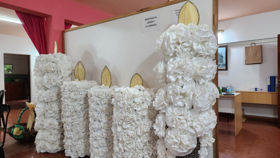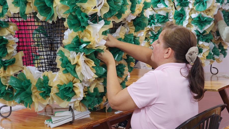 Un equipo de colaboradores trabaja incansablemente en la creación de manualidades y ornamentos que embellecerán la ciudad y reflejarán la rica tradición y fe de sus habitantes.