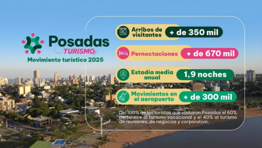 La ciudad misionera de Posadas registró más de 350 mil visitantes durante 2025 y superó los 670 mil pernoctes. El turismo vacacional lideró la demanda, mientras que el segmento corporativo se consolidó como estratégico. Para 2026, el Municipio proyecta un escenario de crecimiento sostenido.
