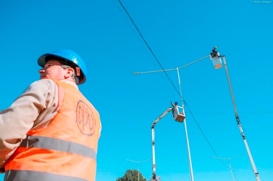 En el sector ya estaban instalados pescantes dobles que tenían luminarias solamente en el lado que da a la calzada principal. Ahora se dispusieron los artefactos necesarios para iluminar las colectoras.