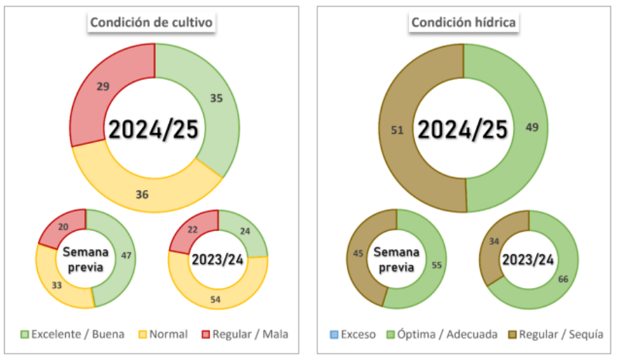 “Se informan las primeras pérdidas de área por lotes resignados y un aumento de los focos de plagas asociadas a condiciones de déficit hídrico”, alerta el documento.