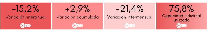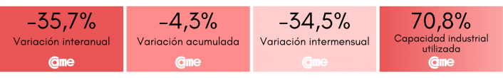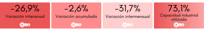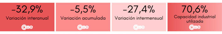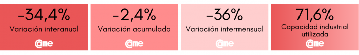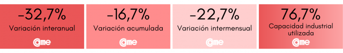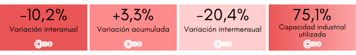 Estos resultados surgen del Índice de Producción Industrial PyME (IPIP) que elabora CAME, con una muestra que alcanzó a 410 industrias PyME a nivel federal.