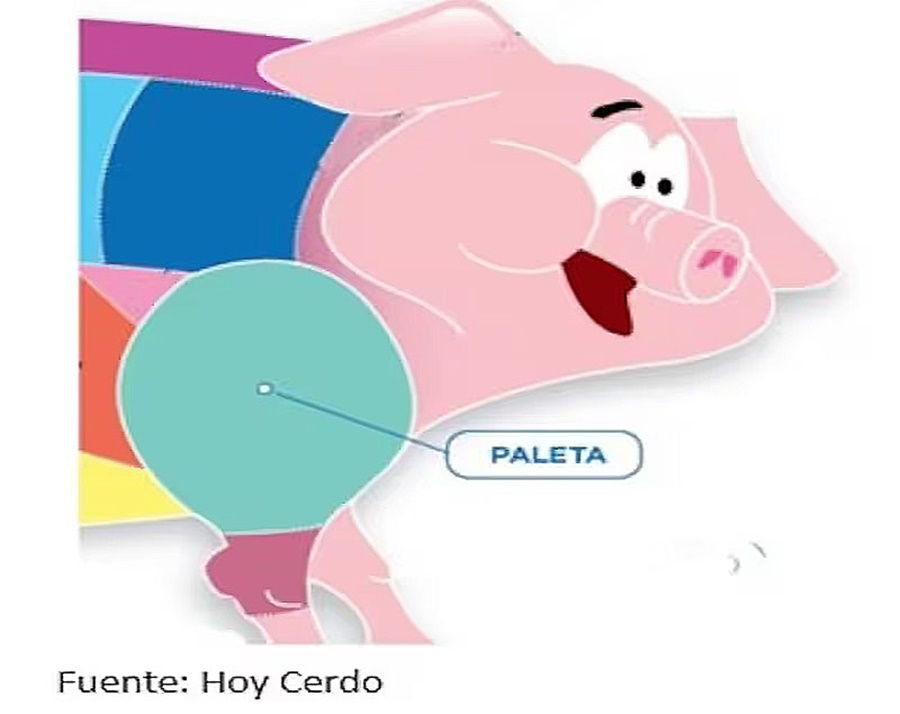 Agregaron: “Cuando decimos paleta de cerdo, algunos quedan con el recuerdo del fiambre de paleta cocida que con el tiempo se transformó en paleta sandwichera y dejó de hacerse con carne de cerdo. Pero hoy nos referiremos a la paleta de cerdo como corte de carne, que como vemos en el gráfico es la pata delantera del animal”.
