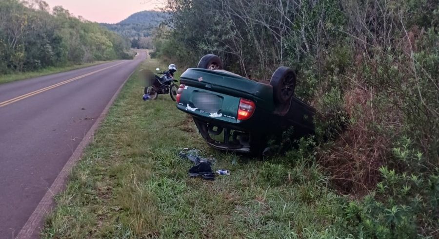 En la mañana de este viernes, la Policía de la provincia de Misiones constató el despiste y vuelco de un automóvil Chevrolet Corsa sobre la banquina de la Ruta Provincial Nº 5, a la altura del kilómetro 9, en cercanías al puente El Chapa.