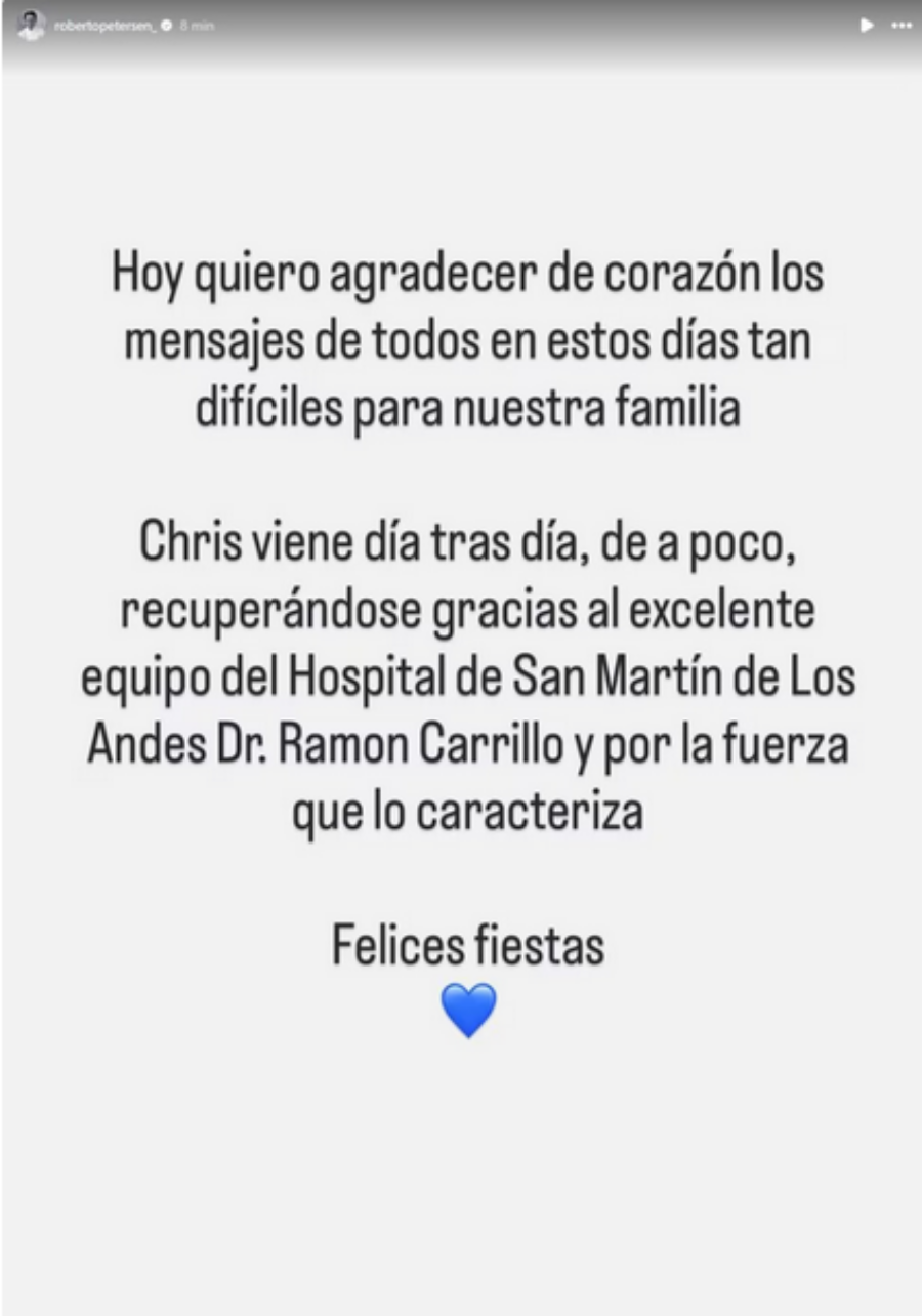 El comunicado de la familia de Christian Petersen y su deseo de Navidad: "Viene recuperándose día tras día" (Instagram)