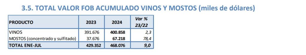El gran salto, sin embargo, se dio en el mosto. La actividad venía de sufrir los cimbronazos de una batalla legal en Estados Unidos por una acusación de dumping que se originó en Californa en 2022, y que se dirimió más de un año después. En todo el período las relaciones comerciales se habían enfriado y las exportaciones se habían frenado considerablemente.