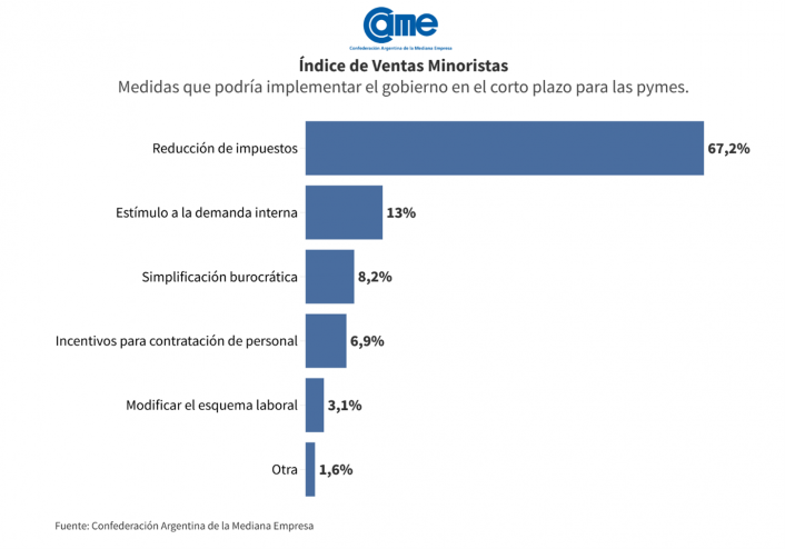 Saliendo del tema impositivo, sobresalió el reclamo de medidas que fortalezcan la demanda interna (13% de las respuestas) y la simplificación burocrática (8,2%).