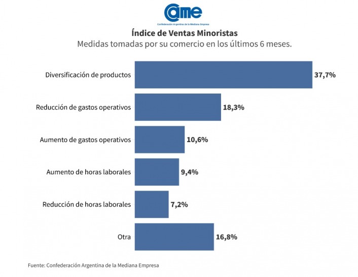 Para hacer frente a este escenario, los comerciantes implementaron diversas estrategias en los últimos seis meses. La más frecuente fue la diversificación de productos, adoptada por el 37,7% de los sondeados, lo que indica una búsqueda activa por captar distintos segmentos de clientes y mejorar la rotación de mercadería.