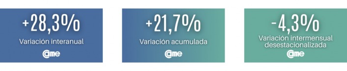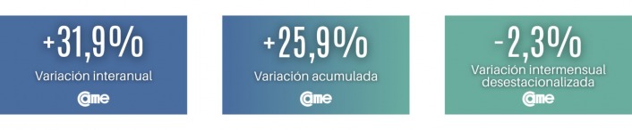 Las ventas crecieron un 23% interanual, acumulando un incremento del 21,4%. Aunque, en el intermensual se midió una caída del 5,4%, la más pronunciada dentro del mes. En este ramo, la base de comparación es Febrero de 2024, cuando las ventas habían retrocedido 21,4%, con un acumulado negativo del 21,1%.