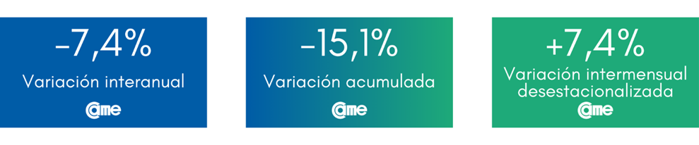 Se registró una disminución del 7,4% en Octubre, siempre interanual y a precios constantes, que acumula una caída de 15,1% en los primeros diez meses del año frente al mismo periodo del año pasado. Por su parte, en el contraste intermensual crecieron 7,4%.