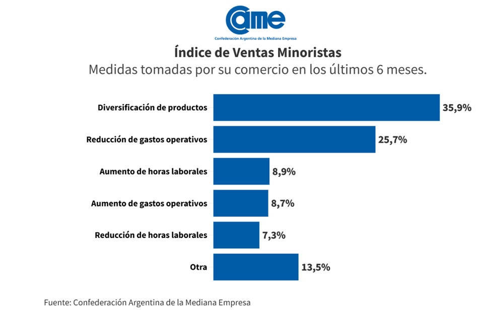Para paliar la coyuntura actual, el 35,9% de las empresas consultadas incorporó nuevos productos y otro 25,7% redujo sus costos operativos.