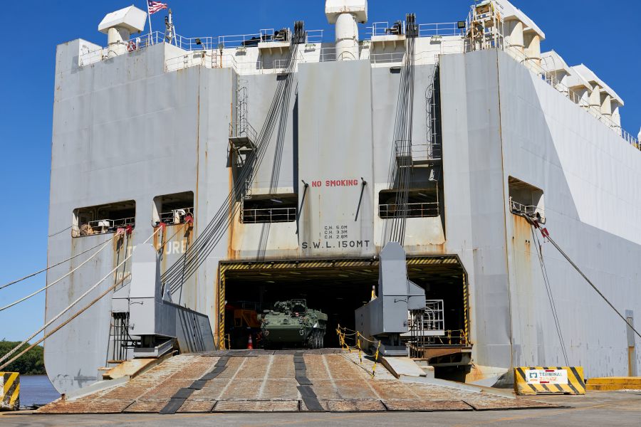 Los primeros Vehículos de Combate Blindados a Rueda STRYKER 8×8 arribaron al país y fueron descargados en el Puerto de Zárate, provincia de Buenos Aires.