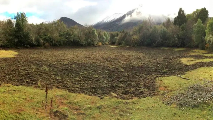 El humedal natural fue gravemente dañado por el hozado de los jabalíes en los bosques del Parque Nacional Nahuel Huapi, en la provincia de Río Negro (M. N. Barrios-García)