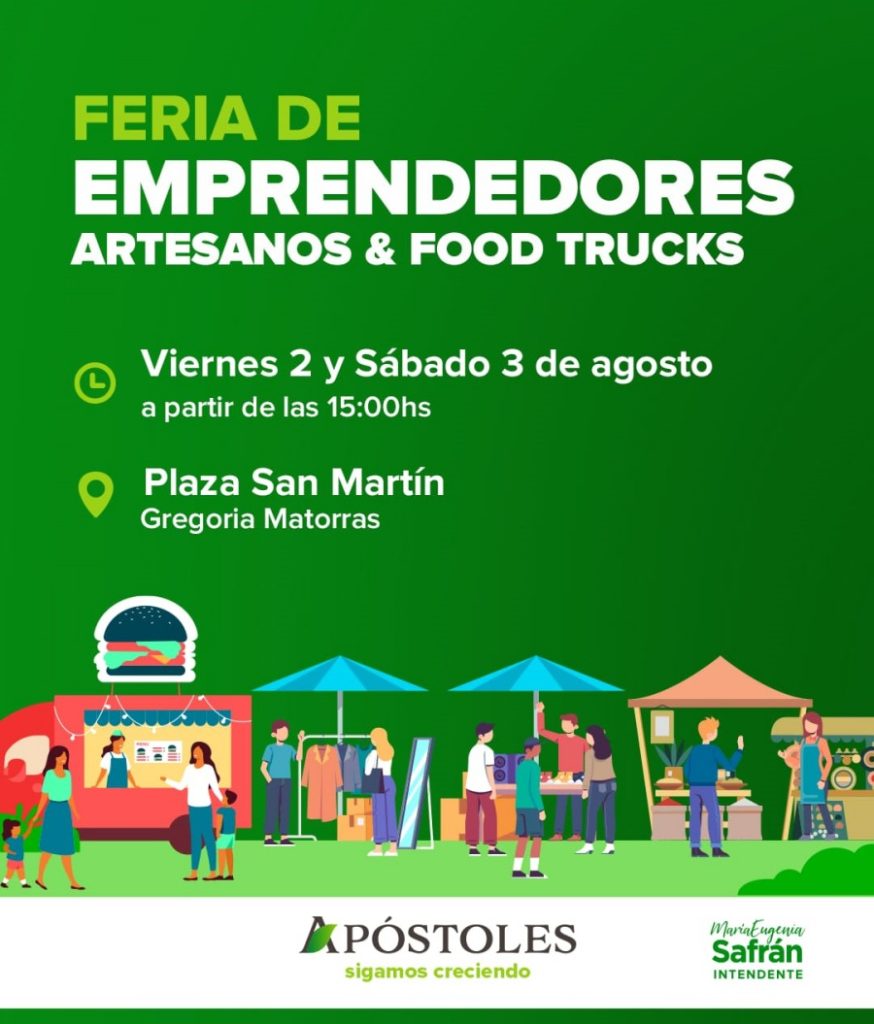 La ciudad misionera de Apóstoles se prepara para recibir a la Feria de Emprendedores, un evento que reunirá a los mejores talentos y sabores de la ciudad. Los días 2 y 3 de Agosto, la Plaza San Martín se convertirá en un lugar de innovación y creatividad, desde las 15,00 horas.