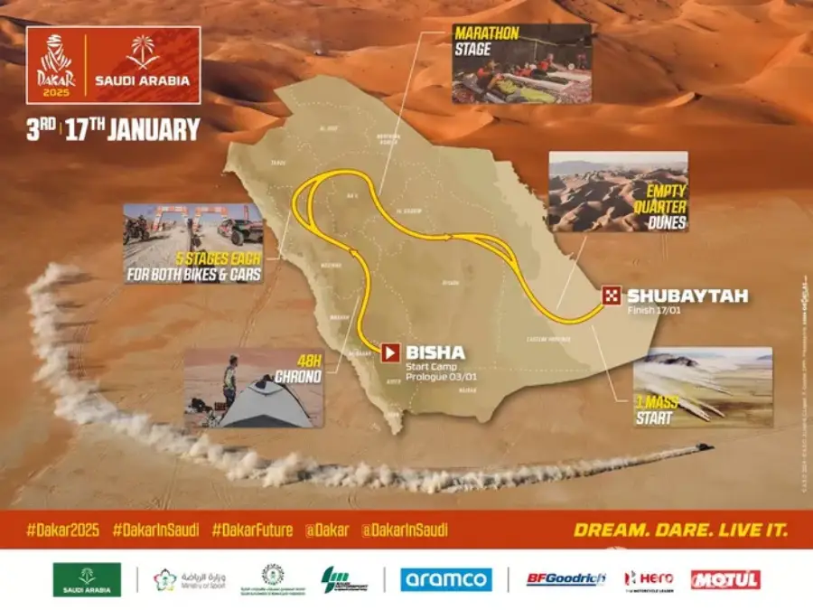 Los días 1° y 2 de Enero serán dedicados a las verificaciones. Tras los primeros pasos en Bisha, se presentará la Etapa 48 Horas de unos 950 kilómetros para desandar en dos jornadas con campamentos variados en medio del gran tramo de velocidad. Se esperan muchos tramos serán separados para Motos y Autos, haciendo que los coches larguen más temprano y no los sorprenda la noche.