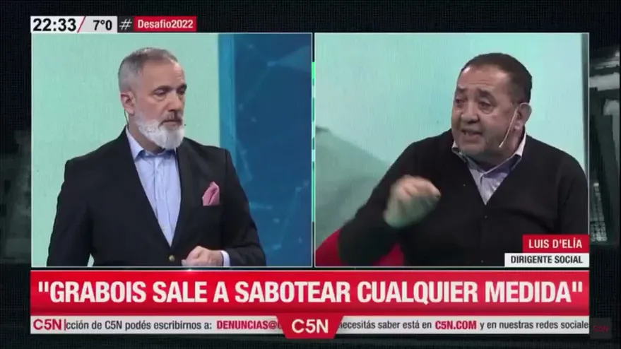 En Agosto del año pasado, ambos discutieron en un estudio de televisión y debieron separarlos. El altercado se produjo poco después de que D’Elía terminase de dar una entrevista. “Grabois me vino a increpar. Me dijo que era un traidor”, dijo.