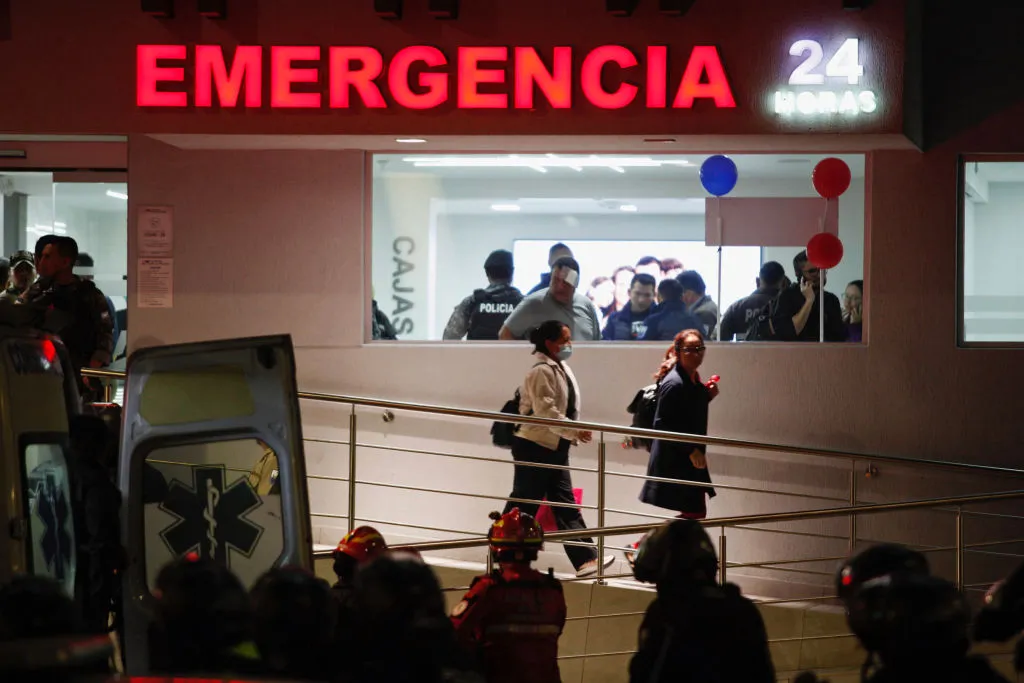 Vista general del hospital al que fue Villavicencio luego de recibir un disparo en un mitin en Quito, el 9 de agosto de 2023. (Crédito: GALO PAGUAY/AFP vía Getty Images)