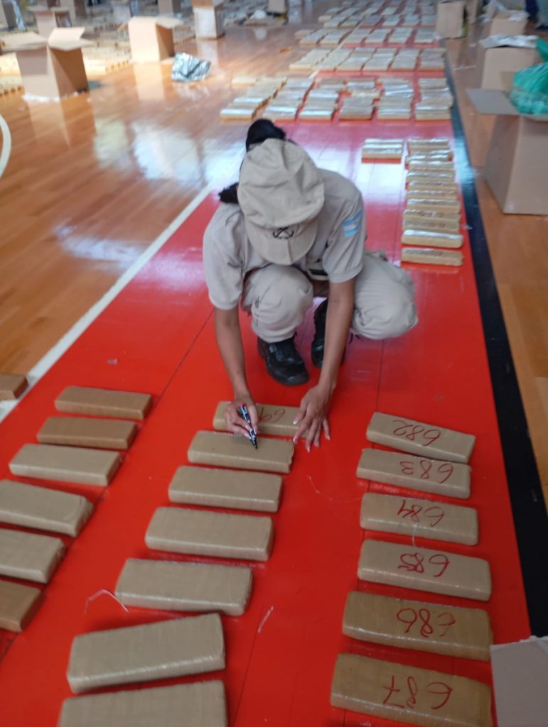 De esta forma, con la ayuda de Osa, una perra de la Institución entrenada para detectar narcóticos, se logró identificar un camión que simulaba una mudanza, pero trasladaba 3.812 kilos de marihuana, dividida en 63 cajas con casi 5000 panes de la droga en su interior y tres bolsas de cogollos.