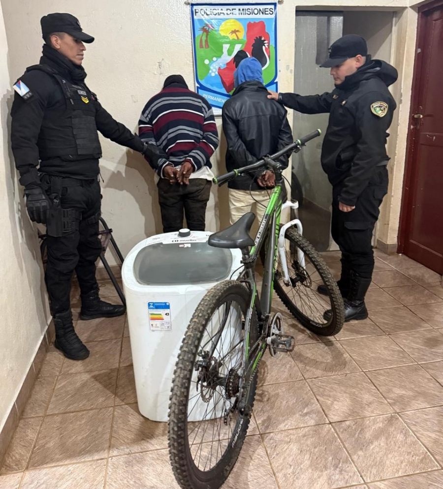 En la localidad de Bernardo de Irigoyen: Efectivos detuvieron a dos jóvenes, de 24 y 25 años, quienes intentaron huir de la Policía en el Barrio Tránsito Pesado. Se les incautó una bicicleta y un lavarropas, elementos cuya procedencia no pudieron justificar.