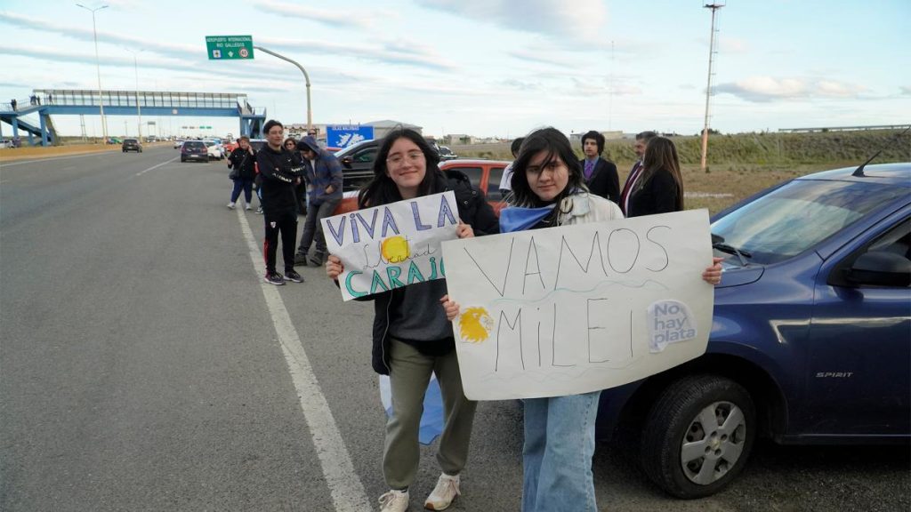 El mandatario llegó con su comitiva al Aeropuerto Internacional Piloto Civil Norberto Fernández (RGL) a las 20,33 horas, tras un viaje de más de tres horas y luego fue recibido por el gobernador de Santa Cruz, Claudio Vidal, quien le entregó una placa con el escudo de la provincia, según informó la Oficina del Presidente en la red X.