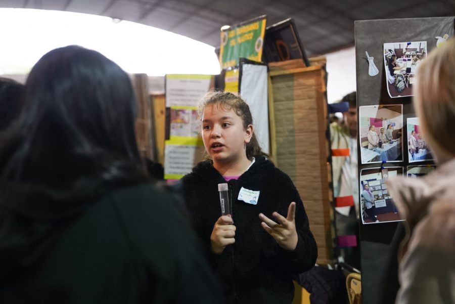 En otro sector, alumnas de la Escuela Nº 107 de Santa Ana — Pricila y Tahiane, acompañadas por la docente Marisa — compartieron su proyecto para revalorizar el histórico Portón de Piedra, con el objetivo de rescatar y visibilizar su valor patrimonial y cultural.