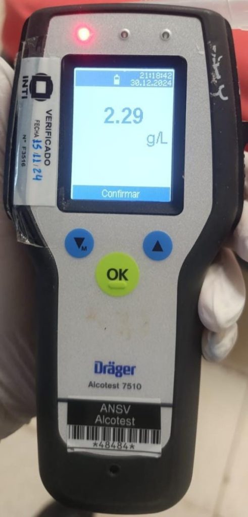 El test de alcoholemia, arrojó un resultado positivo con 2,29 de alcohol en sangre.