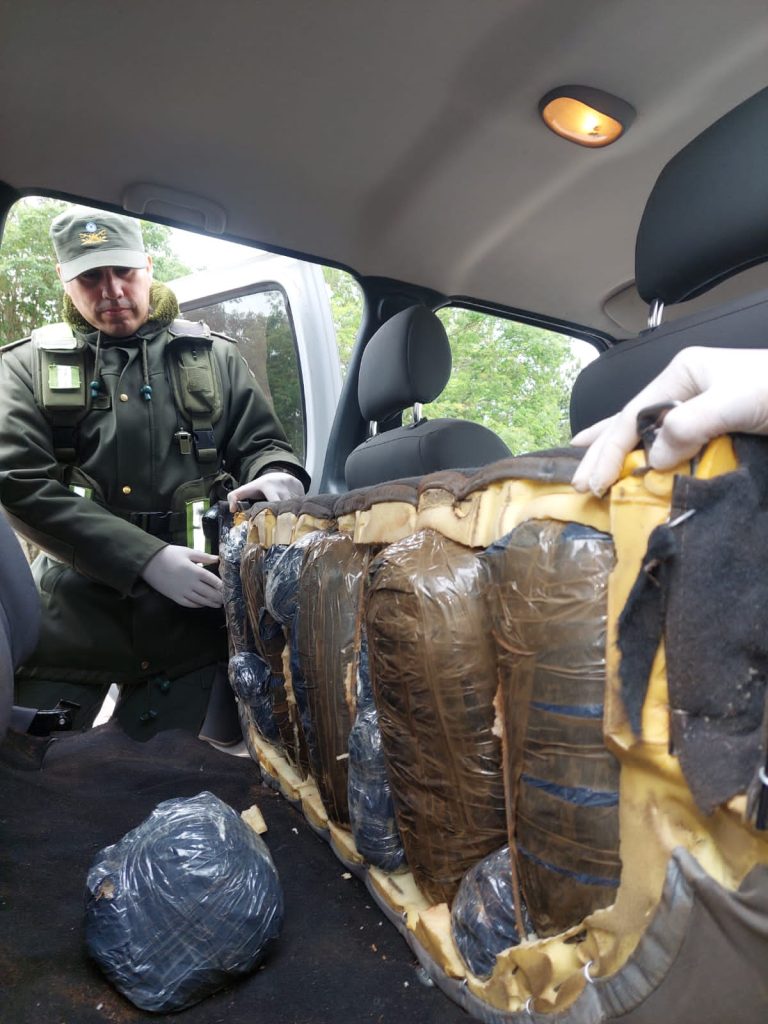 Los mismos se encontraban acondicionados dentro del asiento trasero, en reemplazo su relleno. Asimismo, y en la puerta del conductor, se encontró una pequeña bolsa que contenía una sustancia pulverulenta de color blanco.