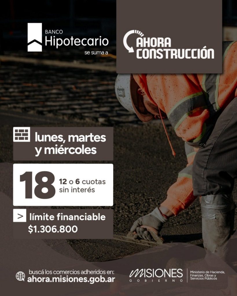 "Creado hace dos años, el Programa Ahora Construcción es una de las líneas que mayor volumen de ventas genera. Actualmente, los días lunes, martes y miércoles, ofrece financiación en 18, 12 o 6 cuotas sin interés con un límite financiable mensual de 1.306.800 pesos".