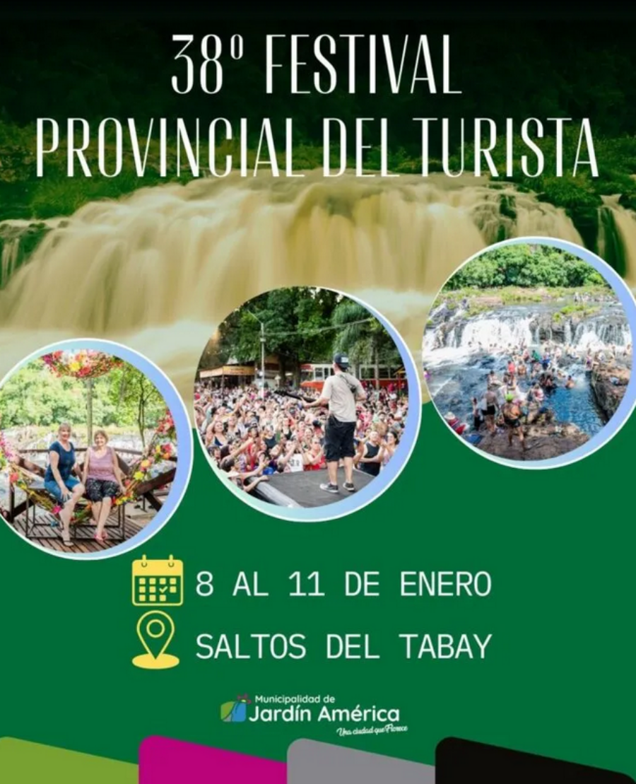 Del 8 al 11 de Enero de 2026, el Municipio de Jardín América será sede nuevamente del tradicional Festival del Turista, una cita que convoca a visitantes de toda la región. El encuentro se desarrollará en el renovado Complejo Camping Municipal Saltos del Tabay, donde las expectativas son de recibir a miles de personas, quienes además podrán acampar o alojarse en las cabañas.