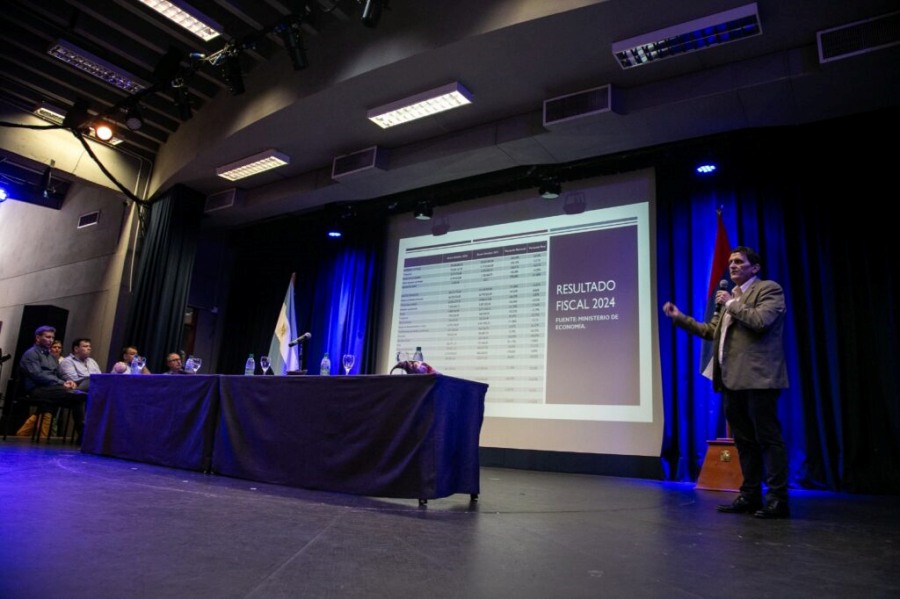 Durante la reunión de trabajo y antes de la entrega de fondos a los Municipios, el Ministro de Hacienda, Adolfo Safrán, analizó la coyuntura económica nacional y realizó un balance desde el punto de vista económico. Safrán advirtió sobre los riesgos de políticas que podrían agravar la recesión y sus implicancias para las Provincias.