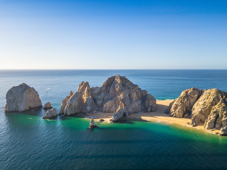 Lovers Beach is on the Sea of Cortez side and Divorce Beach on the rougher Pacific Ocean side. The famous "Arch" is to the far side of Lovers Beach.
