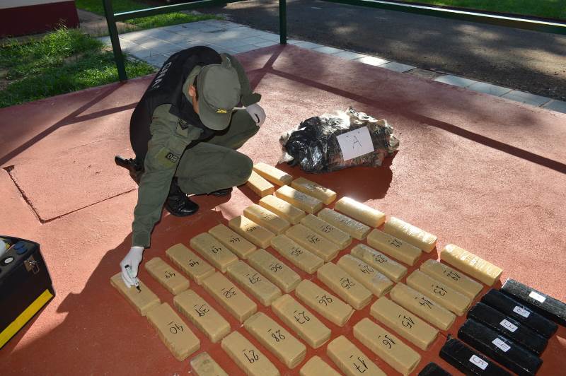 Seguidamente se procedió a realizar un seguimiento controlado de trecientos metros, pese a ello, los individuos lograron perderse de la vista de los Gendarmes. Inmediatamente iniciaron rastrillaje en la zona por donde se fugó el motovehículo, logrando detectar un bulto envuelto en bolsa de nylon color negro.